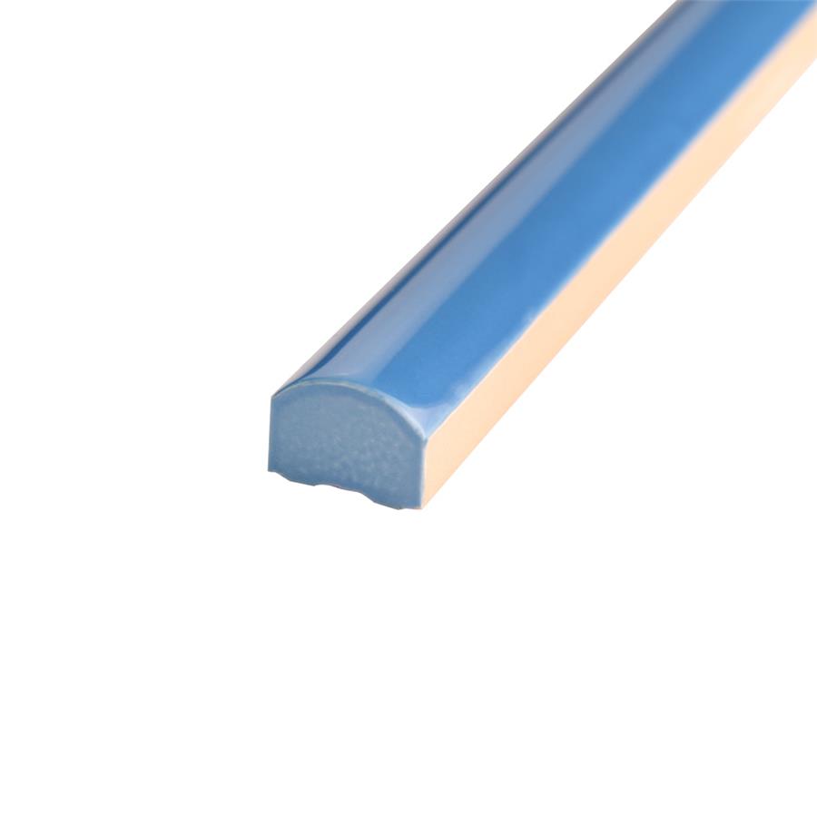 The SomerTile Twist Blue Sky 1/2 in. x 11-3/4 in. Cana Cigarro Ceramic Wall Trim Tile is part of a collection that features a smooth, high sheen finish with colors that really pop. The shades of sky blue that vary throughout are sure to brighten up any room. Coordinate tiles and the trims in this collection to create multicolor patterns and create a custom look to suit your space. Utilize this wall trim to accent a kitchen backsplash or bathroom walls, but avoid any place where scratching is possible.