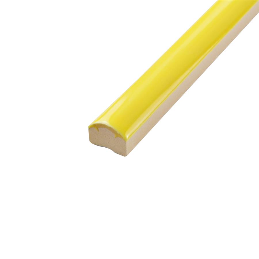 The SomerTile Twist Yellow Lemon 1/2 in. x 11-3/4 in. Cana Cigarro Ceramic Wall Trim Tile is part of a collection that features a smooth, high sheen finish with colors that really pop. The shades of lemon yellow that vary throughout are sure to brighten up any room. Coordinate tiles and the trims in this collection to create multicolor patterns and create a custom look to suit your space. Utilize this wall trim to accent a kitchen backsplash or bathroom walls, but avoid any place where scratching is possible.