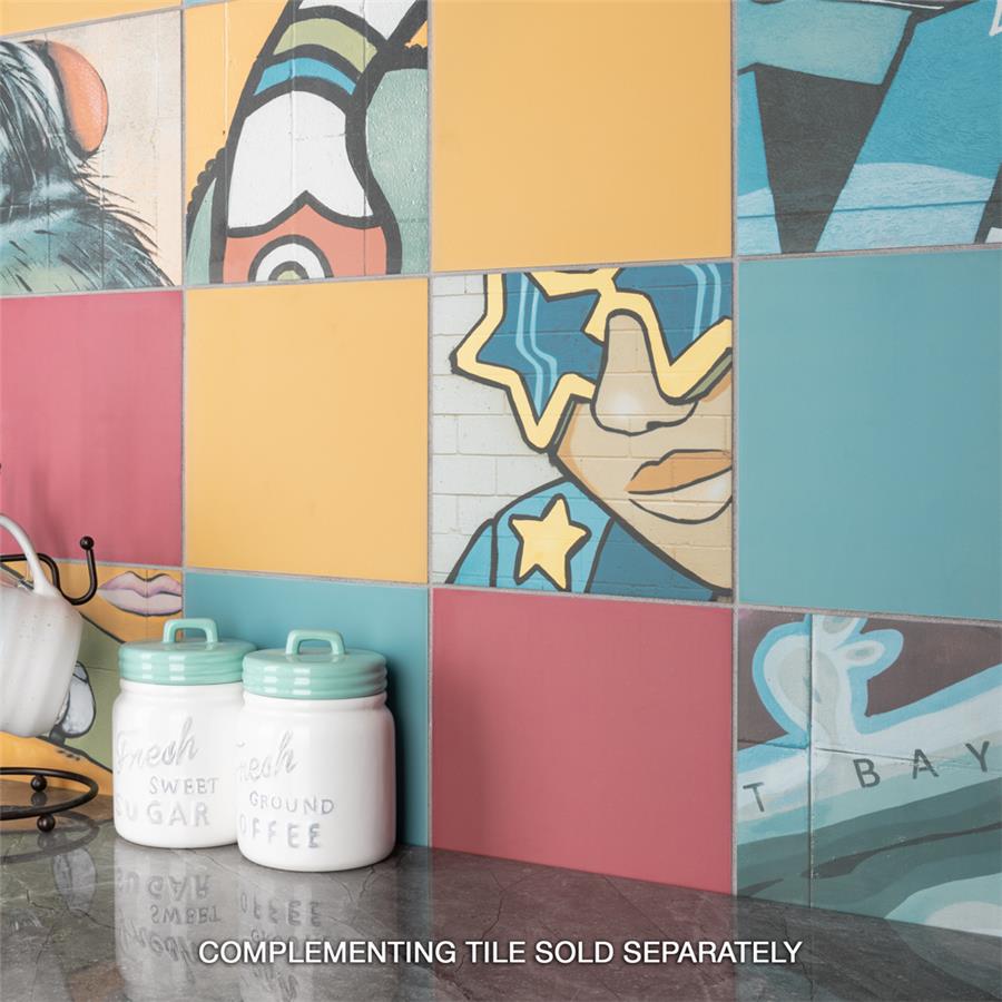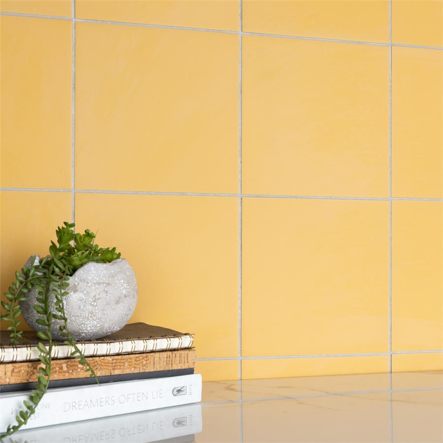 Featuring a colorful yet simplistic appearance, our Underground Exotic Island Sun 8” x 8” Porcelain Floor and Wall Tile adds eye-catching vibrancy to any space. Designed to coordinate with other products in our Underground Collection including our Underground Graffiti 8” x 8”, this solid colored field tile allows you enhance decorative street art patterns with bold color for personalized flair. Set on a high-quality base glaze, this porcelain tile features a soft bright yellow color tone with a slightly textured matte finish. Given the versatility of its format, this square tile is unique yet simplistic enough to integrate into any design, ranging from traditional style renovations to modern home projects. Its ADA-compliant, impervious, frost-resistant and durable features make this an ideal choice for both commercial and residential indoor and outdoor installations including, kitchens, bathrooms, backsplashes, showers, hallways, entryways, patios and fireplace facades. Tile is the better choice for your space. This tile is made from natural ingredients, making it a healthy choice as it is free from allergens, VOCs, formaldehyde and PVC.Special Note: These tiles are precisely calibrated to allow for installation consistency and the use of tighter grout joints.