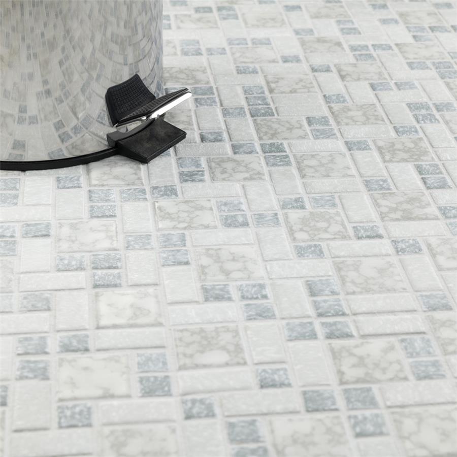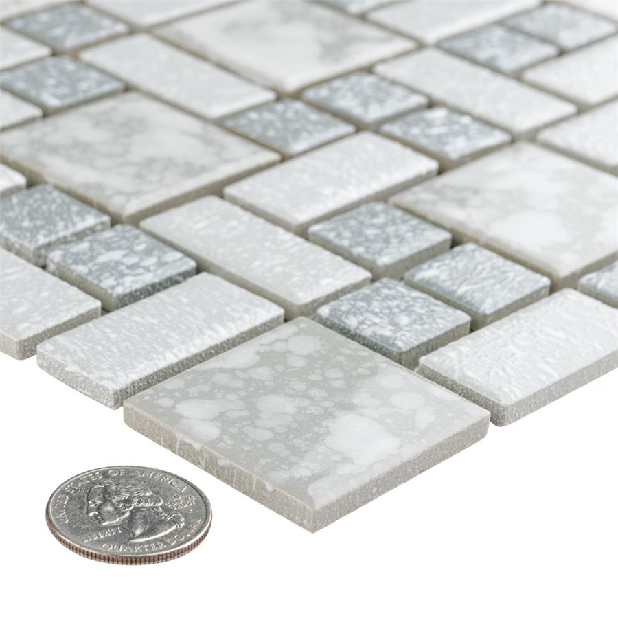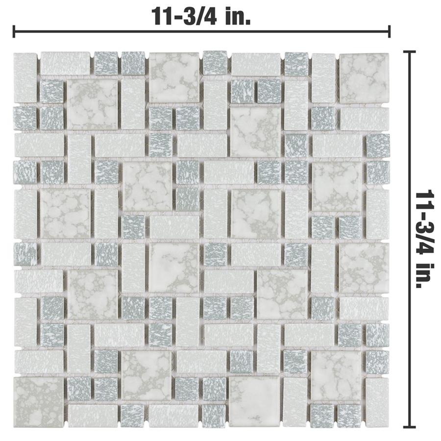 The SomerTile University Light Grey 11-3/4 in. x 11-3/4 in. x 5 mm Porcelain Mosaic Tile is reminiscent of traditional, multi-texture and multi-color porcelain mosaic floor tile. Featuring a mottled finish and muted color palette, these tiles recreate a classic look with the durability and versatility of a modern tile. Use this tile virtually anywhere, due to its frost resistance, high slip resistance and P.E.I. rating of 4.