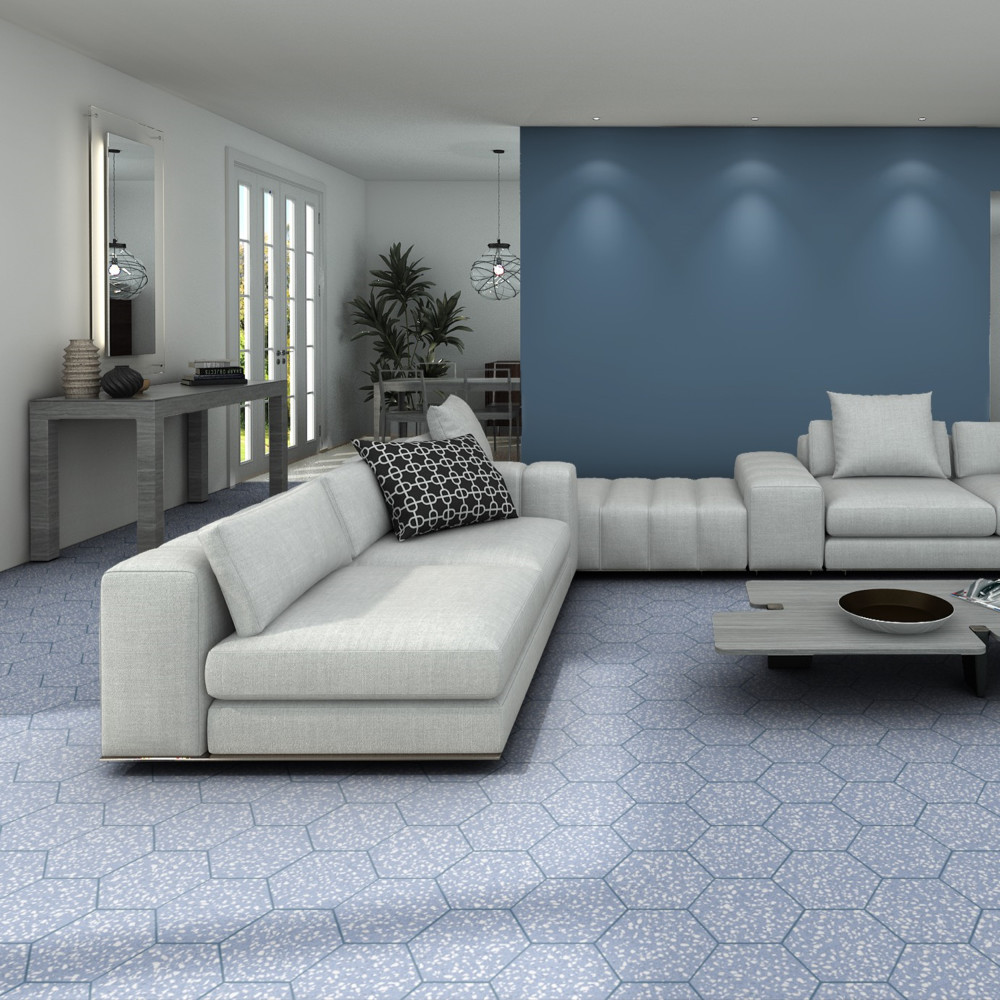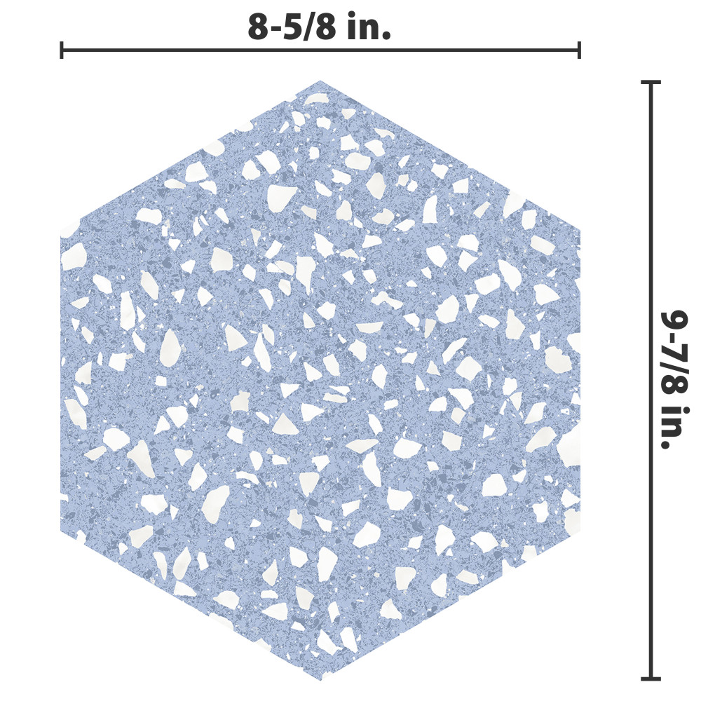 Replicating a terrazzo look, our Venice Hex Sky Porcelain Floor and Wall Tile features a slightly textured, matte finish, making it a great choice for your space. With its impervious, frost-resistant features, this blue hexagon tile is an ideal selection for both indoor and outdoor commercial and residential installations, including kitchens, bathrooms, backsplashes, showers, hallways, entryways, patios and fireplace facades. This tile is a perfect choice on its own or paired with other products in the Venice Hex Collection. Tile is the better choice for your space!