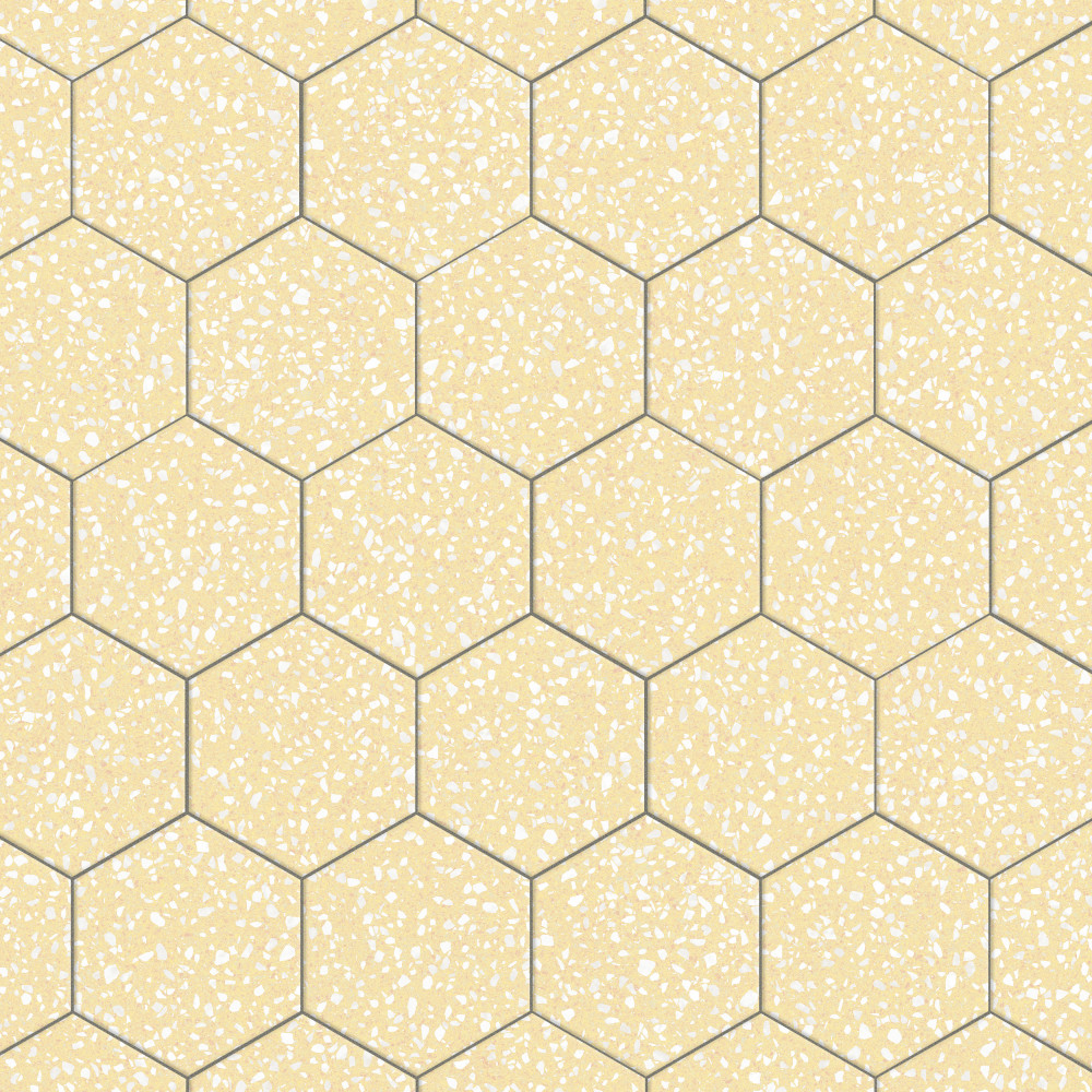 Replicating a terrazzo look, our Venice Hex Yellow Porcelain Floor and Wall Tile features a slightly textured, matte finish, making it a great choice for your space. With its impervious, frost-resistant features, this yellow hexagon tile is an ideal selection for both indoor and outdoor commercial and residential installations, including kitchens, bathrooms, backsplashes, showers, hallways, entryways, patios and fireplace facades. This tile is a perfect choice on its own or paired with other products in the Venice Hex Collection. Tile is the better choice for your space!