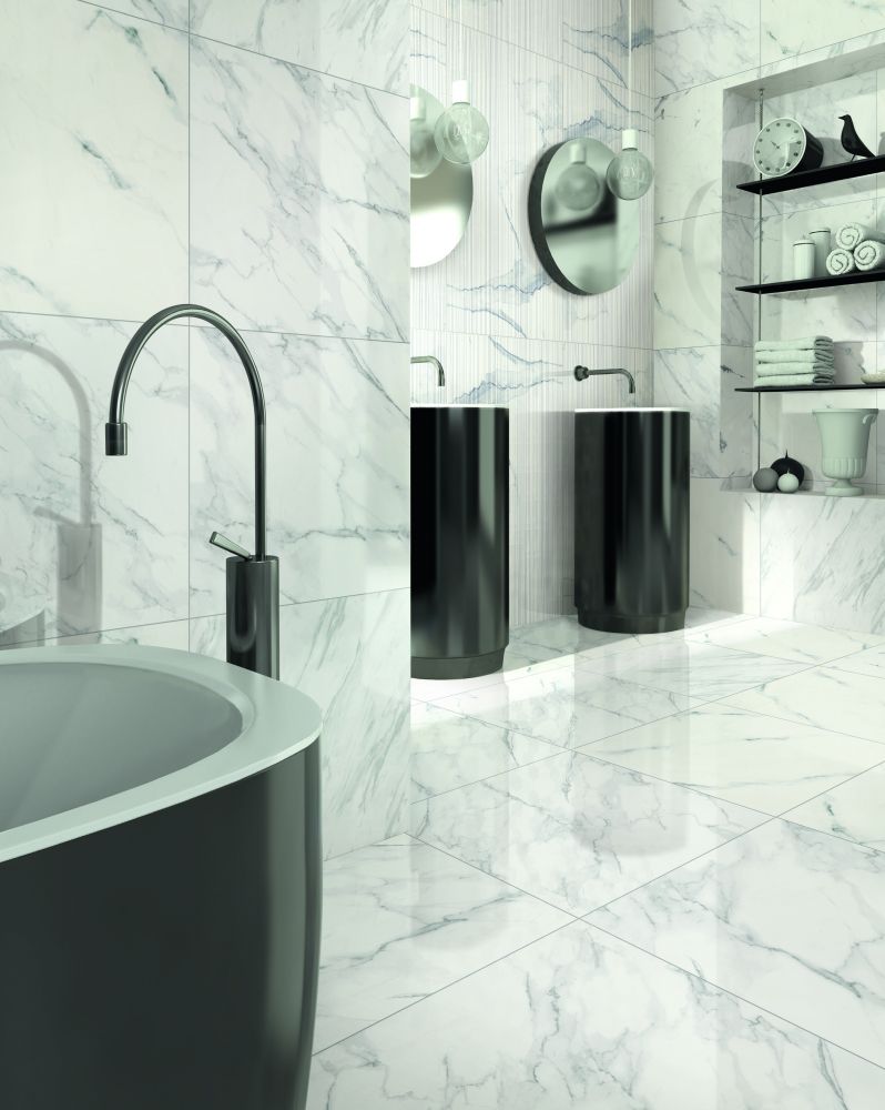 Product Sold By The BoxThis Volakas Premium 24×24 porcelain tile comes in a polished finish.The tile uses inkjet technology, making it possible for more realistic reproductions of other surface materials. This tile has a variation rating of V3, which gives it about 10-15 unique faces.This tile is rectified, meaning it has been precisely cut around the edges in order to be installed with minimal grout lines, which makes for an almost-seamless, clean look.PEI measures a tile’s durability and ability to withstand foot traffic. This is rated on a scale of 1-5, with 5 being the hardest. This tile is rated at 4 PEI, suitable for residential, medium commercial, and light institutional applications.WARNING: This product can expose you to chemicals including crystalline silica (airborne particles of respirable size) in dust created during fabrication/installation if the product is dry cut/ground or pulverized, which are known to the State of California to cause cancer. For more information, go to https://www.p65warnings.ca.gov/.