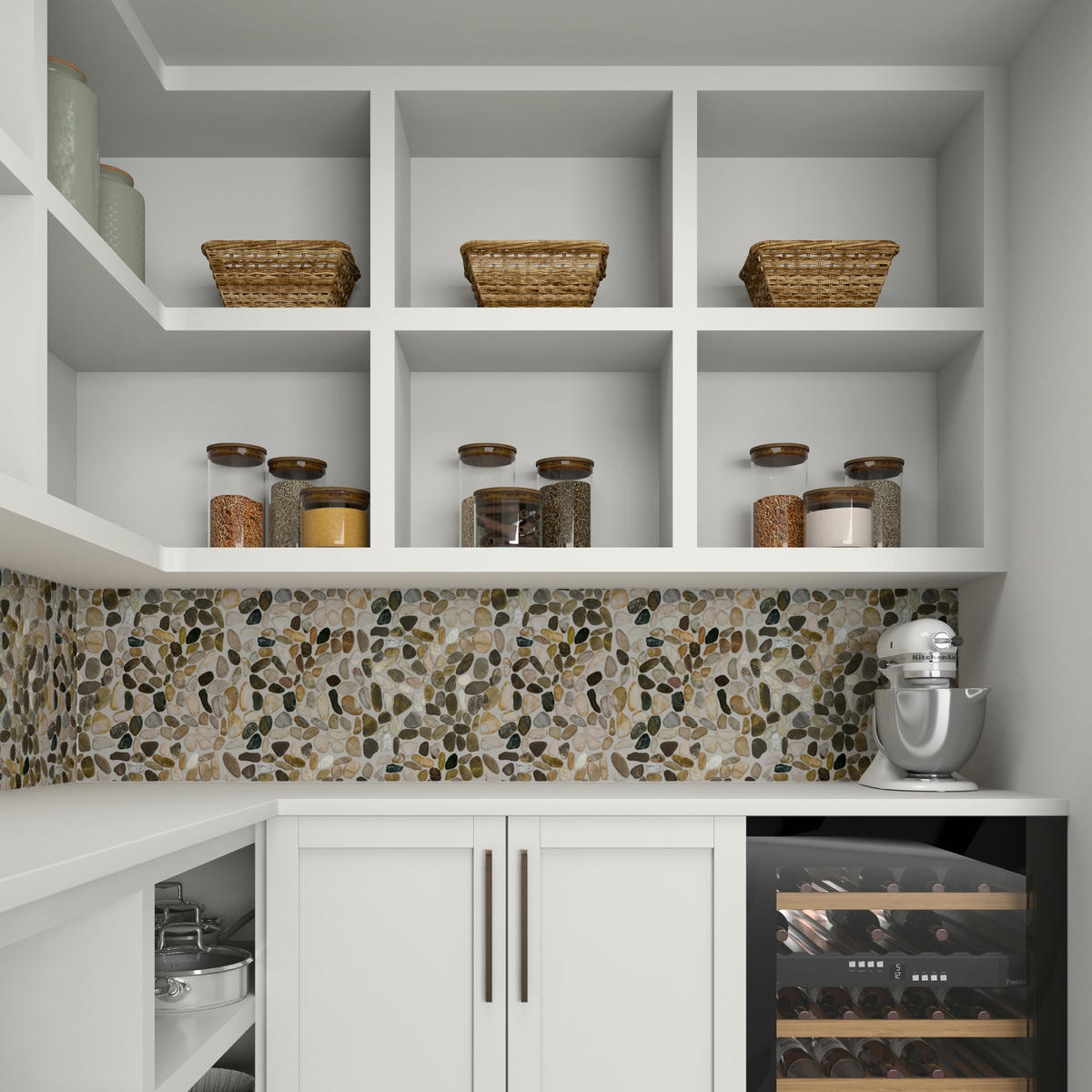 • 13" x 13" Decorative Accents Earthy Blend Mosaic Natural Stone Tile Square River Pebble Saw Cut