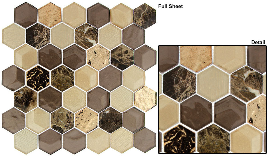 Tile size: 2” HexagonSheet size: 12” x 11 7/8”Sheet coverage: 0.99 SFTiles per sheet: 42Tile thickness: 1/4″ (6mm)Grout joints: 1/8″ (4mm)This product is mesh mountedDue to the variance in installation methods, grout colors, lighting, image variances and computer monitor settings; the images above may not accurately represent the true color of the products after installation.Therefore Glazzio Tiles always recommends that tiles not be purchased from an image of any kind.** Installation of this product in a wet application must be set with epoxy mortar and epoxy grout.